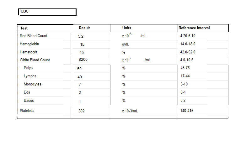 | Baso# (Number of Basophils) | 0.00-0.30 x 109/L |