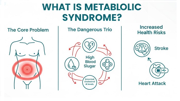 | Key Components | 1. Abdominal Obesity 2. High Blood Pressure: 3. High Blood Sugar 4. High Triglycerides 5. Low HDL Cholesterol |