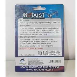 All these components, tried and tested for ages, make up Robust Extreme. Robust Extreme is recommended for men aged 18 years old and above and it must be taken two hours before the intimate activity.